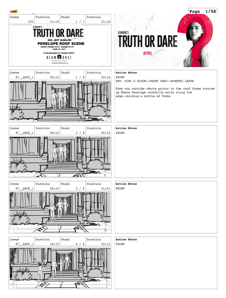 Storyboards from Truth or Dare (Dir. Jeff Wadlow) (Blumhouse) by Frank Forte